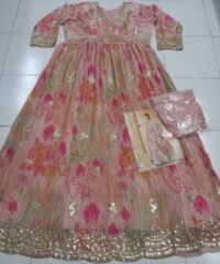 Be the first to review “Delisa Fashion Indian Dresses Floral Digital Print Chinon Silk With Embroidery Sequence Work Naira Cut Style Gown With Dupatta For Women-5643”