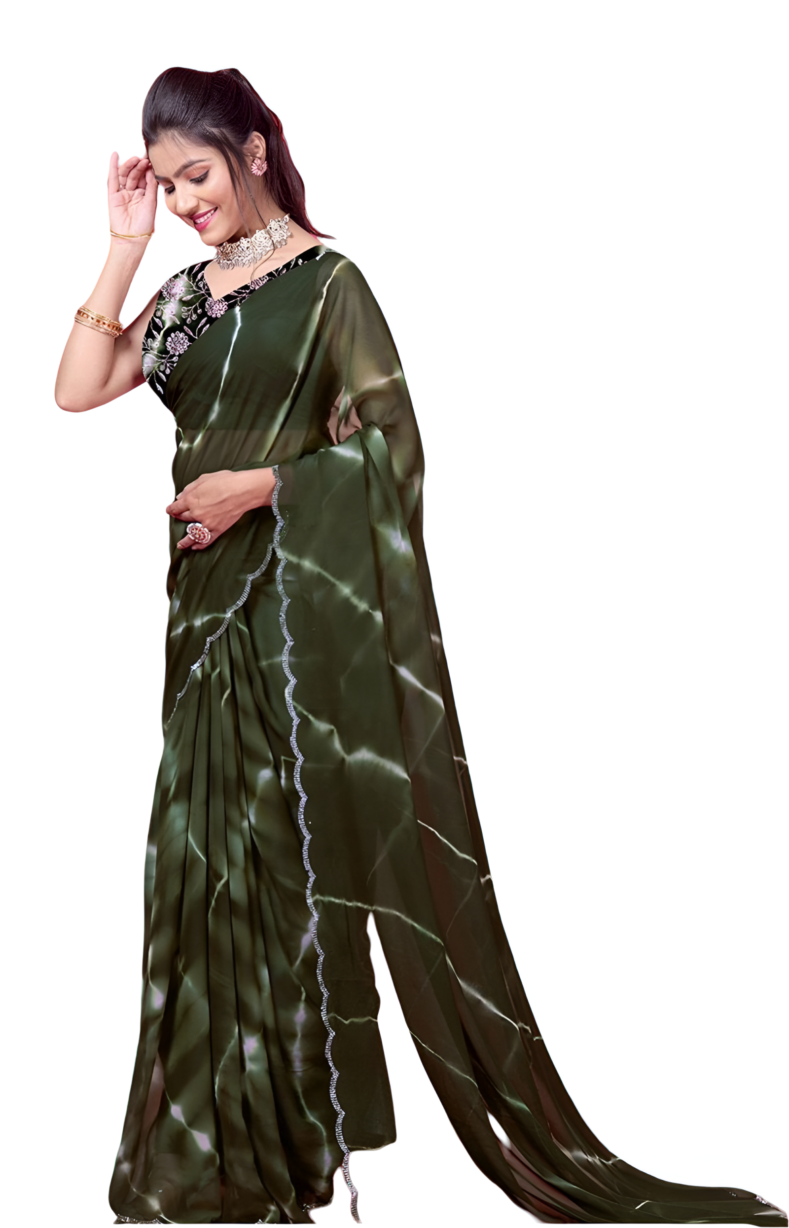 This Beautiful Indian Traditional Moss Georgette Silk Saree . Saree is India’s one of the most popular and widely used traditional attires. The beauty and elegance of Indian women can be best revealed in saree. Saree, also called as Sari, is the most famous Indian attire worn by women not only in India but all over the world.