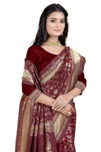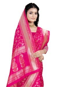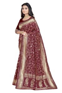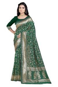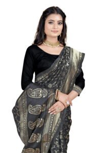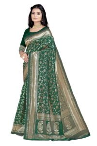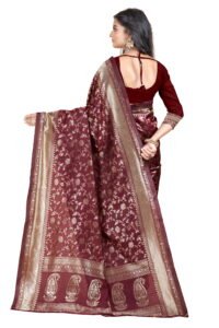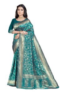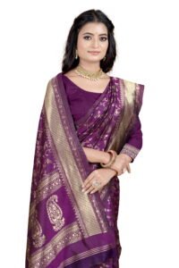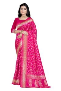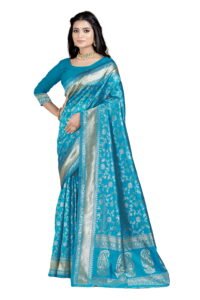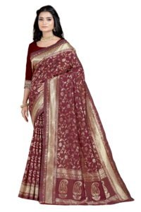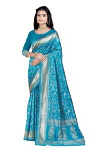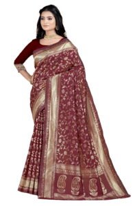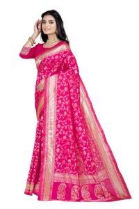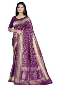 This Beautiful Indian Traditional Ethnic Banarasi Art Silk Saree . Saree is India’s one of the most popular and widely used traditional attires. The beauty and elegance of Indian women can be best revealed in sareeSaree, also called as Sari, is the most famous Indian attire worn by women not only in India but all over the world.