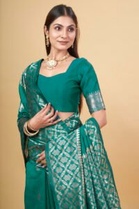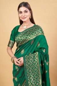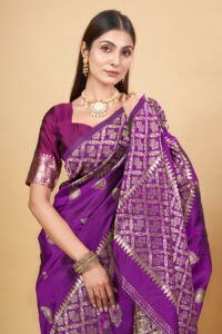 This Beautiful Indian Traditional Ethnic Banarasi Art Silk Saree . Saree is India’s one of the most popular and widely used traditional attires. The beauty and elegance of Indian women can be best revealed in saree. Saree, also called as Sari, is the most famous Indian attire worn by women not only in India but all over the world.