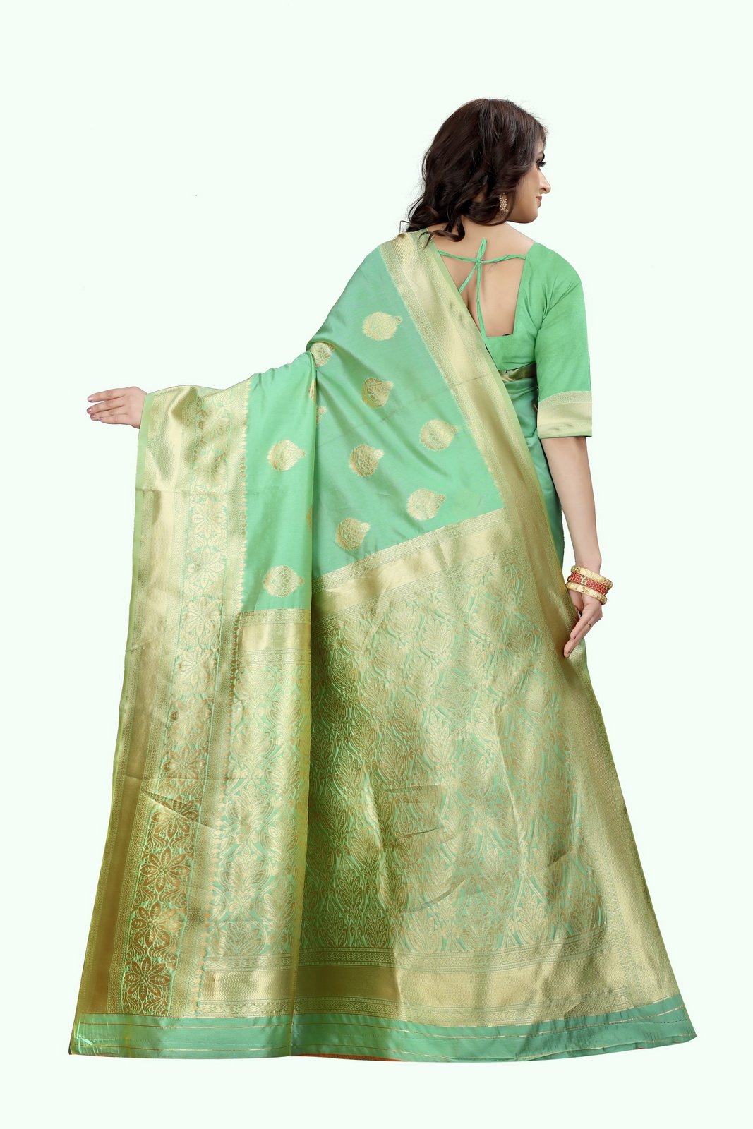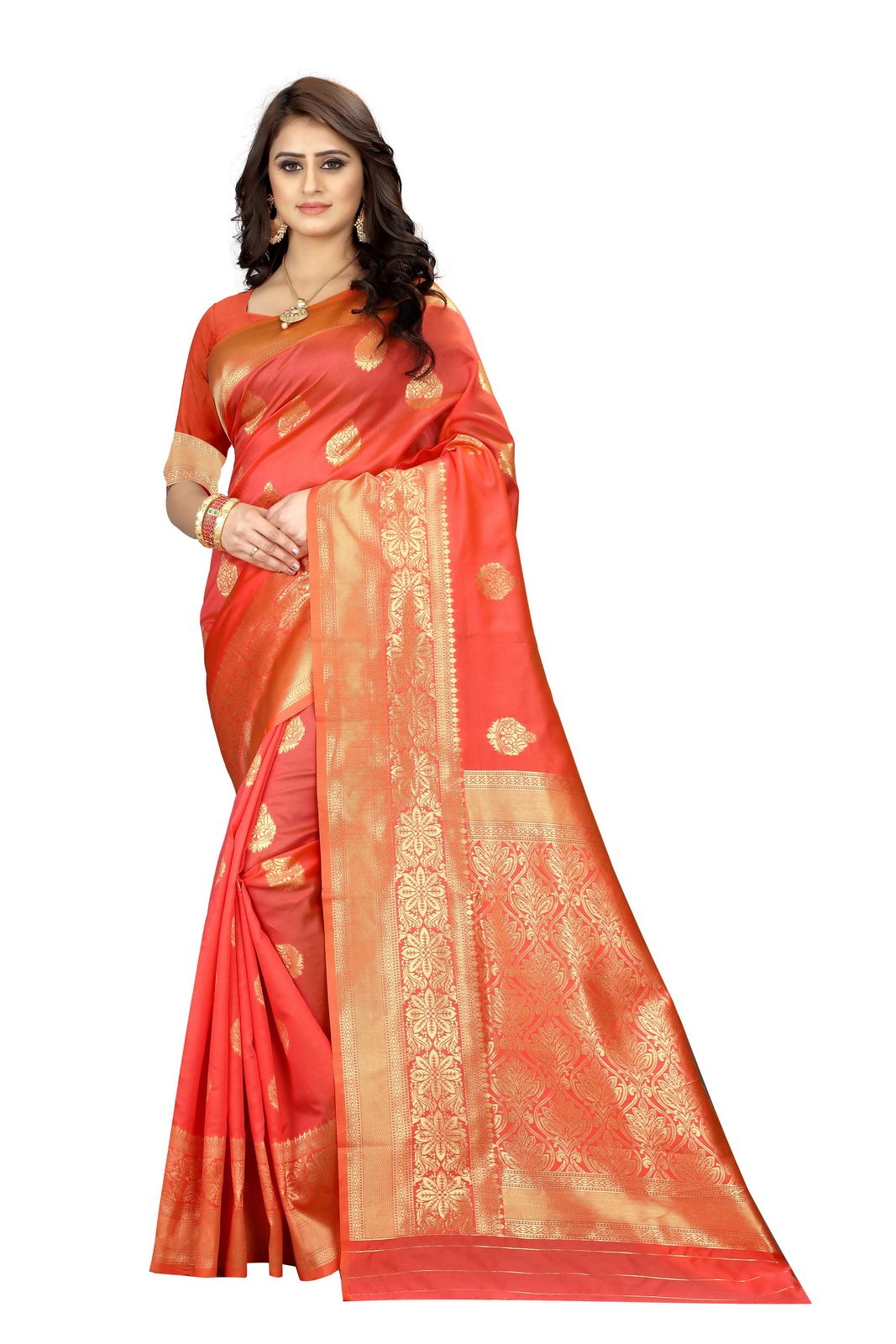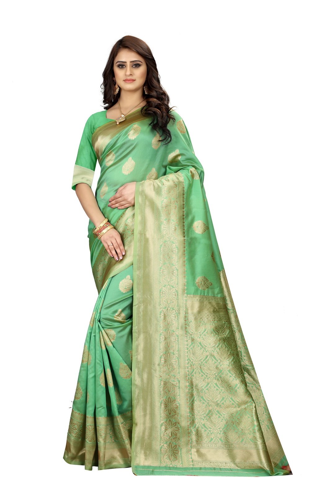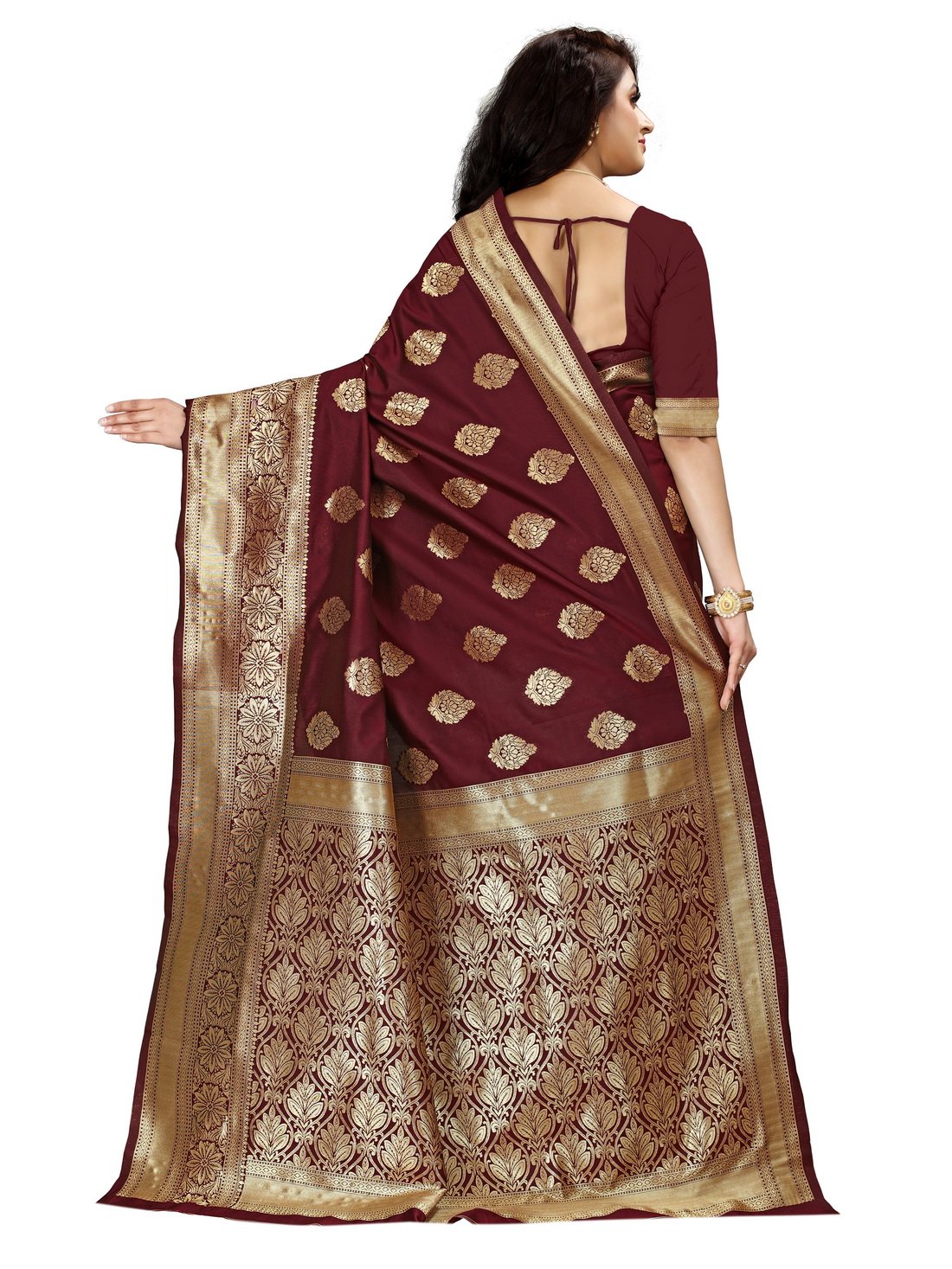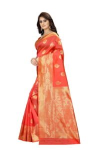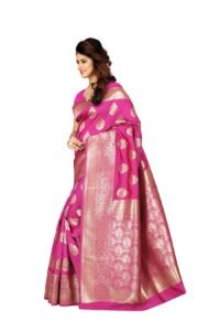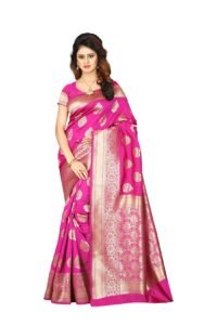 This Beautiful Indian Traditional Ethnic Kanjivaram Banarasi Art Silk Saree . Saree is India’s one of the most popular and widely used traditional attires. The beauty and elegance of Indian women can be best revealed in sareeSaree, also called as Sari, is the most famous Indian attire worn by women not only in India but all over the world.