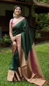 This Beautiful Indian Traditional Ethnic Banarasi Soft Silk Saree . Saree is India’s one of the most popular and widely used traditional attires. The beauty and elegance of Indian women can be best revealed in saree. Saree, also called as Sari, is the most famous Indian attire worn by women not only in India but all over the world.