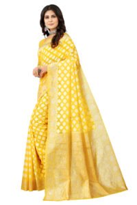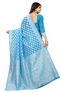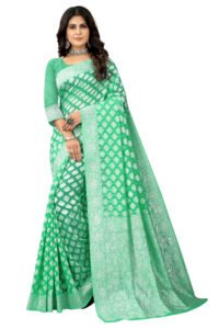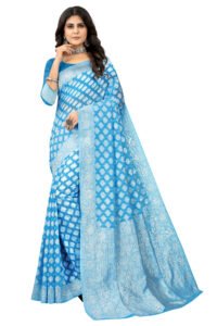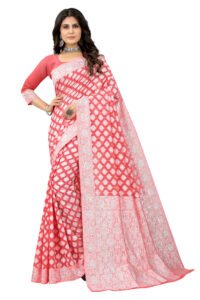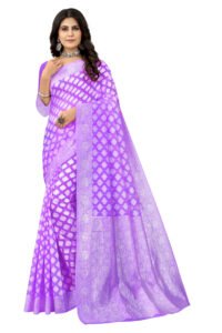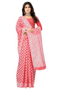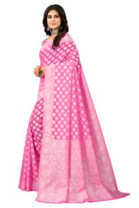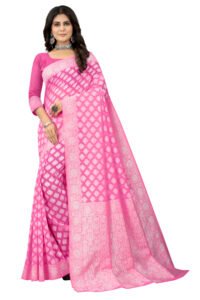 This Beautiful Indian Traditional Ethnic Banarasi Cotton Art Silk Saree . Saree is India’s one of the most popular and widely used traditional attires. The beauty and elegance of Indian women can be best revealed in saree. Saree, also called as Sari, is the most famous Indian attire worn by women not only in India but all over the world.