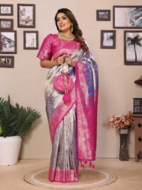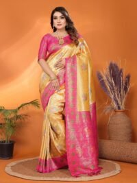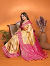 This Beautiful Indian Traditional Ethnic Banarasi Tissue Silk Saree . Saree is India’s one of the most popular and widely used traditional attires. The beauty and elegance of Indian women can be best revealed in saree. Saree, also called as Sari, is the most famous Indian attire worn by women not only in India but all over the world.