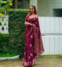 This Beautiful Indian Traditional Ethnic Kanjivaram Banarasi Soft Silk Saree . Saree is India’s one of the most popular and widely used traditional attires. The beauty and elegance of Indian women can be best revealed in saree. Saree, also called as Sari, is the most famous Indian attire worn by women not only in India but all over the world.