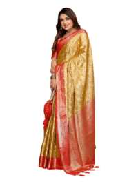This Beautiful Indian Traditional Ethnic Banarasi Tissue Silk Saree . Saree is India’s one of the most popular and widely used traditional attires. The beauty and elegance of Indian women can be best revealed in saree. Saree, also called as Sari, is the most famous Indian attire worn by women not only in India but all over the world.