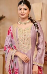 Be the first to review “Delisa Fashion Women Dresses Anarkali Style Full Sleeves Vichitra Fabric Traditional Suit Set With Dupatta For Women-5201”