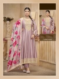 Delisa Fashion Women Dresses Anarkali Style Full Sleeves Vichitra Fabric Traditional Suit Set With Dupatta For Women-5201