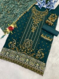 • Fabric Details :- Heavy Faux Georgette || Inner :- Dull Silk Santoon || Bottom :- Dull Silk Santoon || Dupatta – Heavy Faux Georgette ||