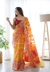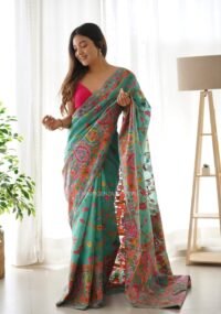 This Beautiful Indian Traditional Ethnic Banarasi Soft Silk Saree . Saree is India’s one of the most popular and widely used traditional attires. The beauty and elegance of Indian women can be best revealed in saree. Saree, also called as Sari, is the most famous Indian attire worn by women not only in India but all over the world.