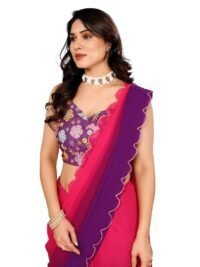 This Beautiful Indian Traditional Georgette Silk Saree . Saree is India’s one of the most popular and widely used traditional attires. The beauty and elegance of Indian women can be best revealed in saree. Saree, also called as Sari, is the most famous Indian attire worn by women not only in India but all over the world.