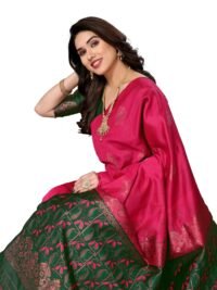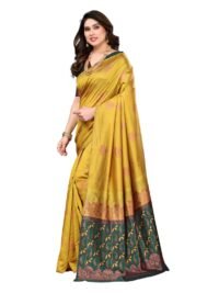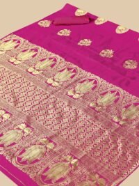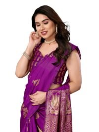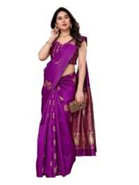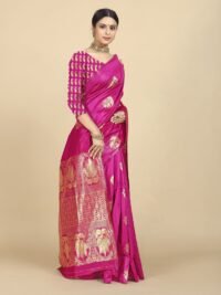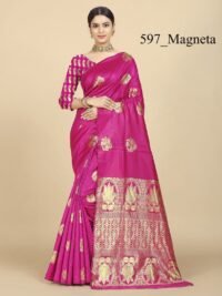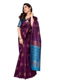 This Beautiful Indian Traditional Jacquard Banarasi Art Silk Saree . Saree is India’s one of the most popular and widely used traditional attires. The beauty and elegance of Indian women can be best revealed in saree. Saree, also called as Sari, is the most famous Indian attire worn by women not only in India but all over the world.