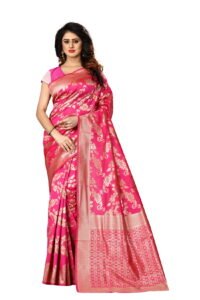 This Beautiful Indian Traditional Ethnic Banarasi Art Silk Saree . Saree is India’s one of the most popular and widely used traditional attires. The beauty and elegance of Indian women can be best revealed in saree. Saree, also called as Sari, is the most famous Indian attire worn by women not only in India but all over the world.