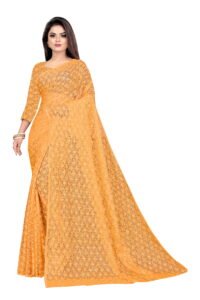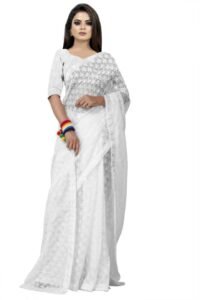 This Beautiful Indian Traditional Net Silk Saree . Saree is India’s one of the most popular and widely used traditional attires. The beauty and elegance of Indian women can be best revealed in saree. Saree, also called as Sari, is the most famous Indian attire worn by women not only in India but all over the world.