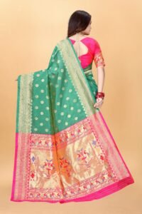 Women’s Gorgeous Kanjivaram Banarasi Art Silk All over Paithani Weaving Sarees With Blouse Piece S-202