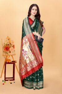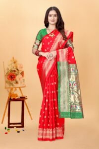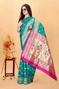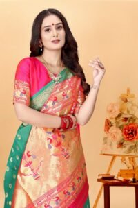 Be the first to review “Women’s Gorgeous Kanjivaram Banarasi Art Silk All over Paithani Weaving Sarees With Blouse Piece S-202”