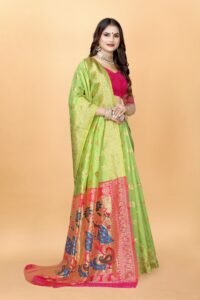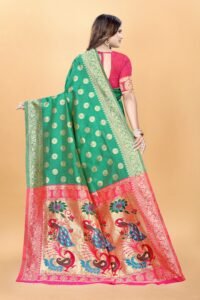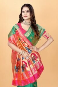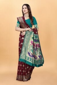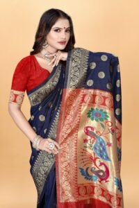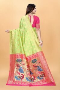 Be the first to review “Women’s Gorgeous Kanjivaram Banarasi Art Silk All over Paithani Weaving Sarees With Blouse Piece S-207”