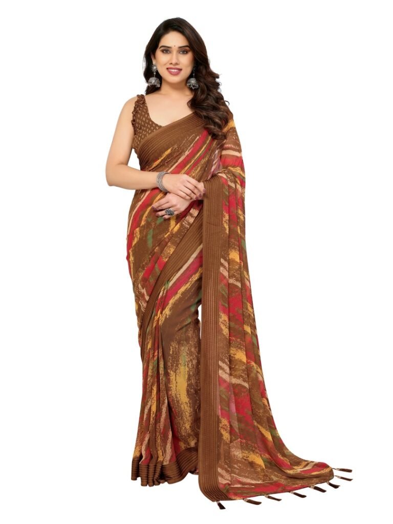 This Beautiful Indian Traditional Georgette Silk Saree . Saree is India’s one of the most popular and widely used traditional attires. The beauty and elegance of Indian women can be best revealed in saree. Saree, also called as Sari, is the most famous Indian attire worn by women not only in India but all over the world.
